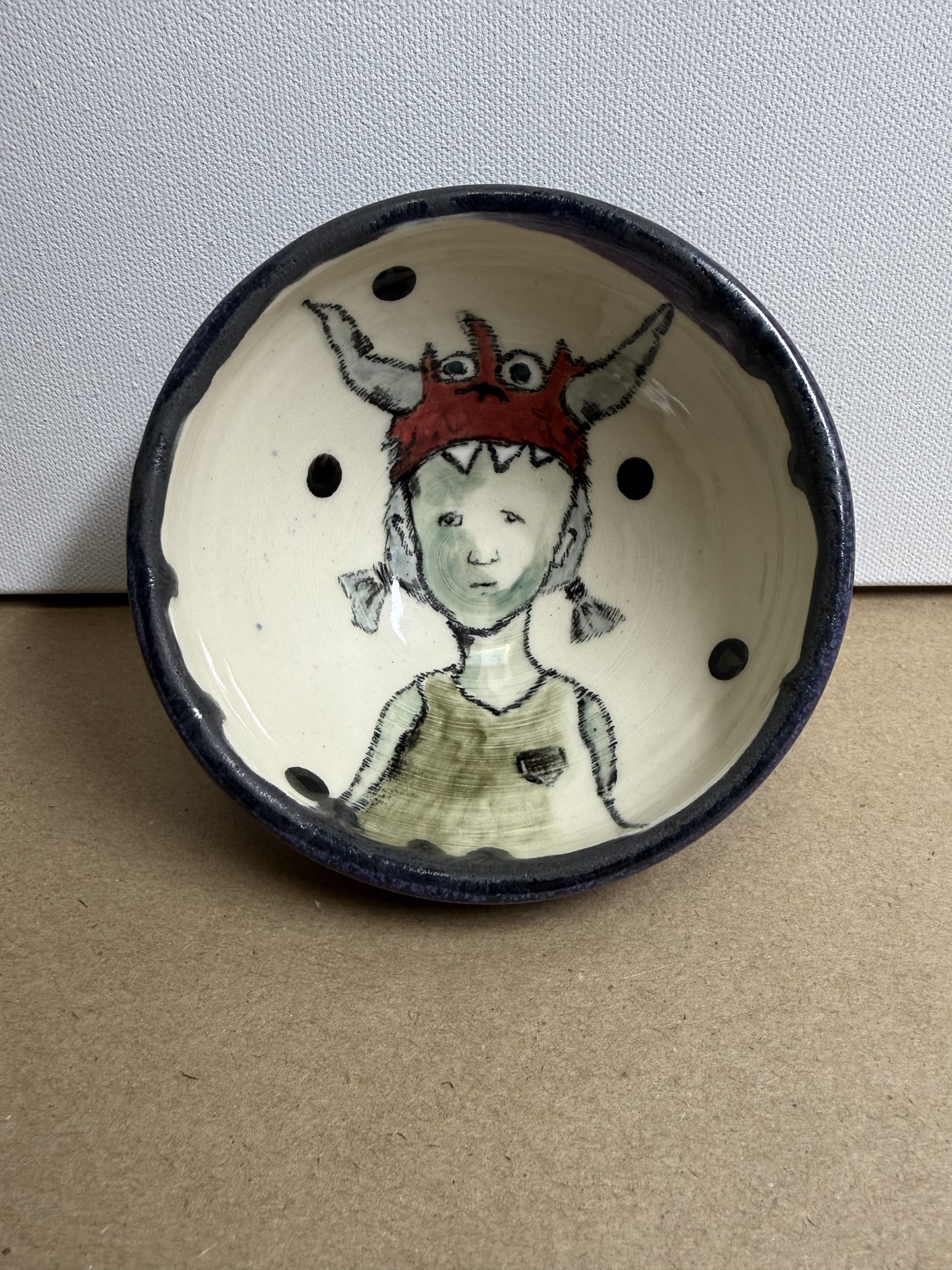 / girl in monster hat bowl